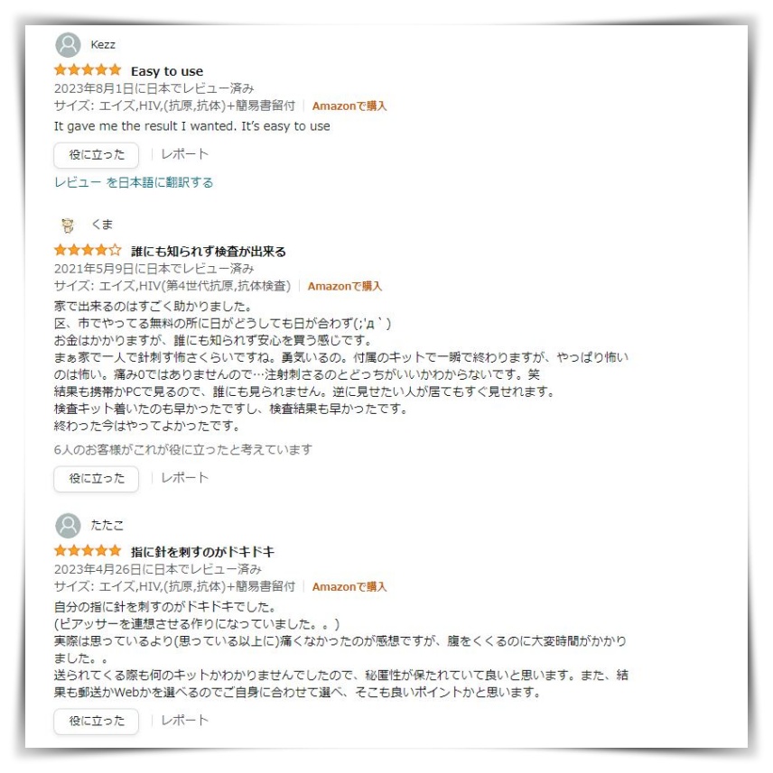 | 匿名性 | 検査の流れの中で匿名性に問題がないか比較しました |