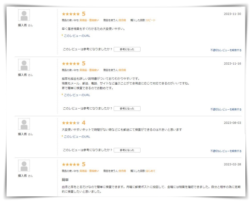 どちらの販売元の検査機関を独自で持っているため、信頼性のおける販売元だとわかります。やはり検査キットは信頼性が一番だと思うので、どちらの販売元も十分信頼でき安心ですね。